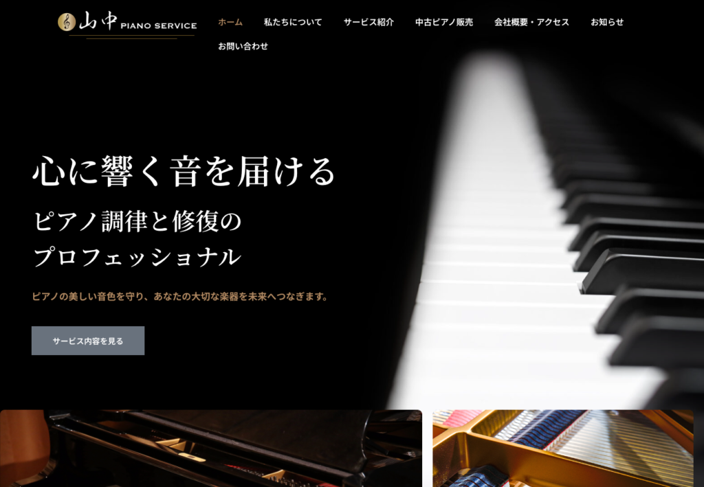 このたび、ピアノ調律・修復のプロフェッショナルである山中ピアノサービス様のホームページを制作いたしました。